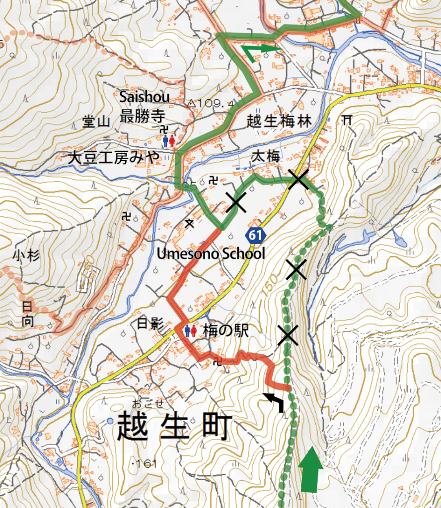 大高取山からの下り途中で左折して梅の駅方面へ進んでください。(第12回外秩父大会の下山コースと同様になります。)