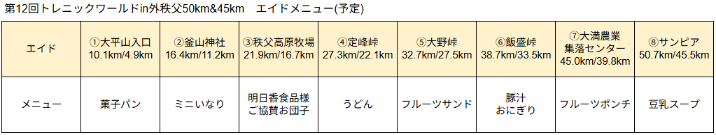 ※エイドの食べ物は一人1点ずつ程度を補助的にご用意しています。満腹にはなりません。